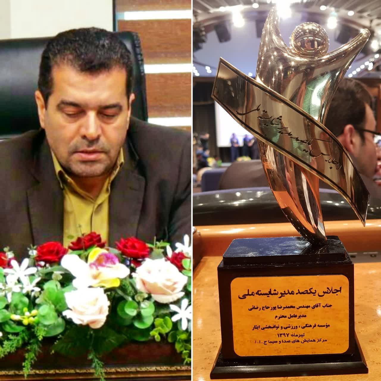 عصر بیستم تیرماه ۹۷،مرکز همایش های صدا و سیمای جمهوری اسلامی ایران از سوی دبیرخانه مدیر شایسته ملی،محمدرضاپورحاج رضایی مدیر عامل موسسه ایثار به عنوان یکی از ۱۰۰ مدیر شایسته ملی جمهوری اسلامی ایران انتخاب شد و به علت عدم حضور ایشان درخشان قائم مقام موسسه در جایگاه حاضر شد و تندیس و لوح […]